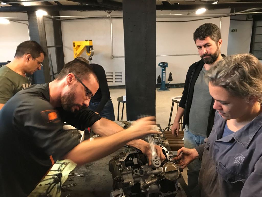 Com uma metodologia expositiva onde a prática é embasada na teoria mecânica em aulas presenciais.
